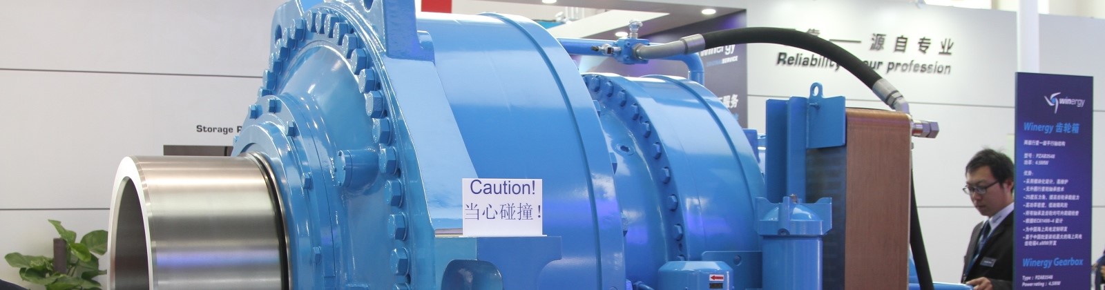 在中国风能展览会上,威能极向公众展示了其新开发的 4.5 MW 海上齿轮箱。随着该样件的展出,威能极(中国)在高度活跃的市场中奠定了未来继续取得成功的地位。该齿轮箱的传动比为 1:132,额定输入转矩为 3,788 kNm,机械功率为 5,035 kW。齿轮箱设计的重点在于优化的功率密度,以最大限度地提高客户设备的效率。这件展品引起了整个业界的极大兴趣,并开启了这次中国风电市场最重要展会上的诸多有价值讨论。